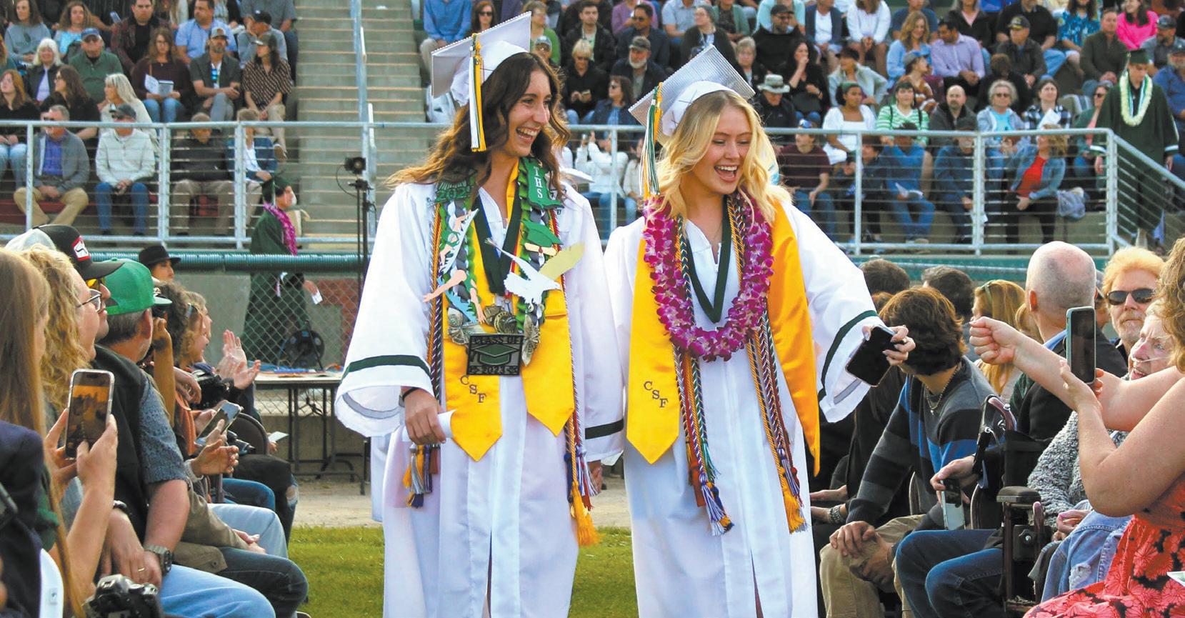 already lived it. Overton commended the students’ achievements, including 75 scholarship recipients, 229 students taking advantage of the Cuesta Promise, and four signing national letters of intent, to name a few. The Class of 2023 is also the first at PRHS to wear decorated caps, which they advocated for at PRJUSD meetings.
