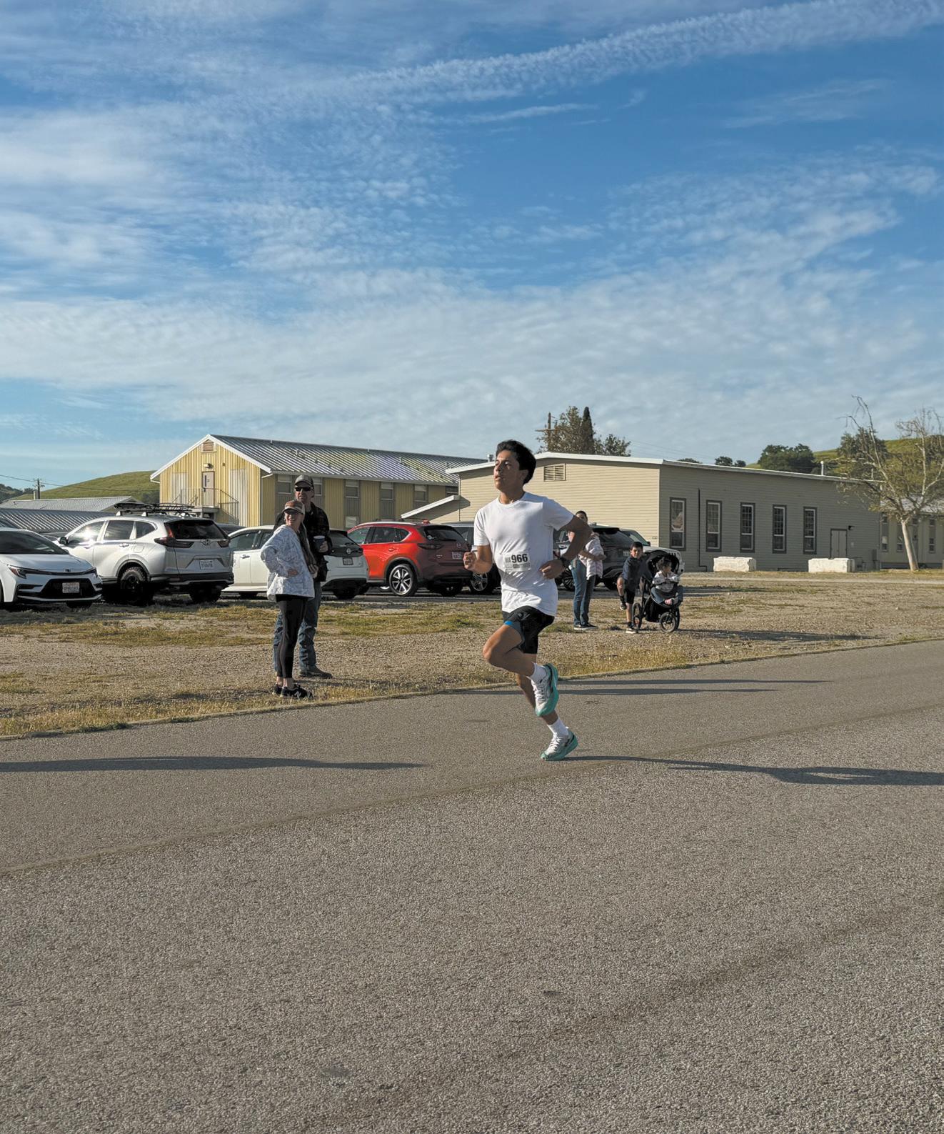 (Left photo)In addition to a marathon, half-marathon, 10K, and 5K, the Buzz Marathon, held March 21 at Camp Roberts, also had a Kid’s Mile for children under 12, which included these participants.(Right photo)Paso Robles High School senior Juan Jesus Hernandez Roman runs the 5K race at the Buzz Marathon on Saturday, March 21. He came in first for his age group at the race. Photo by Camille DeVaul/PRP