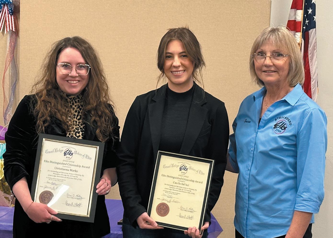“Each year, the outgoing Exalted Ruler picks someone from our community that they feel goes above and beyond, the unsung heroes of the community, to be recognized as the Elk’s Citizen of the Year,” said Past Exalted Ruler Susan Marple. “This year, we had two [citizens], Camille DeVaul and Christianna Marks. The dynamic duo from the Atascadero News were helpful and supportive and easy to work with, and they shined a media spotlight on many of the good works that the Elks do in our community.”