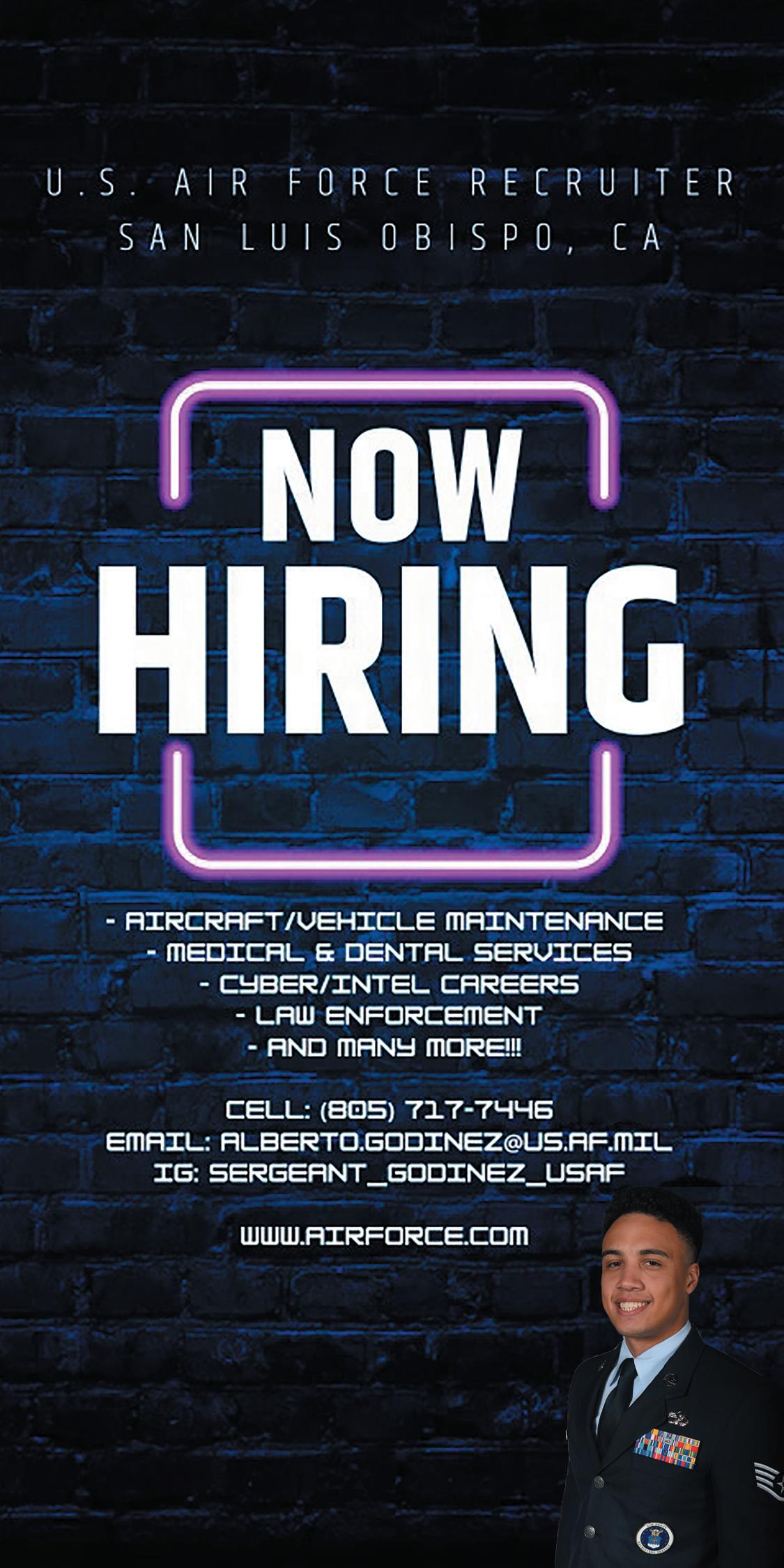 Order On-Line We Deliver! Daily 8am - 3pm 1102 Pine St., Paso Robles Affordable Prices... AND Expert Installation Over 40 Years of Experience FREE ESTIMATES (805) 227-4344 bob@bobsprainsdraperies.com Bob Sprain CUSTOM WINDOW COVERINGS WOOD SHUTTERS & DRAPERIES ALL BLINDS & SHADES Some Restrictions Apply 65% OFF ASSISTED LIVING MEMORY C ARE RESIDENTIAL C ARE HOME SLG S C Sue Gibson, CSA, MBA (805) 464-2871 sue@slgseniorcare com w w w.SLGSeniorCare com FREE PLACEMENT SERVICE The Revival Center est 1993 a division of Alpha Beth Ministries God Bless America! PASTOR DOROTHY ABDELAZIZ & BISHOP GABRIEL (GABE) ABDELAZIZ, D.DIV. SUNDAY 10AM WEDNESDAY 7PM Iglesia en Espanol Viernes y Sabado 7pm 3850 Ramada Drive, Suite A-3 ‧ Paso Robles (805) 434.5170 ‧ alphabeth.org ‧ alphabeth@tcsn.net ‧ IG: the_revival_center a Non - Denominational Charismatic Church pasoroblespress.com Since 1889
