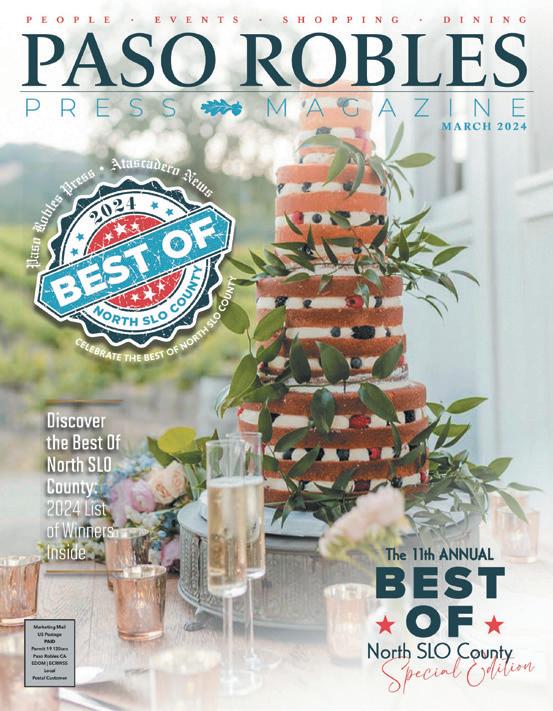 This month’s edition of Paso Robles Magazine is brought to you by all the local advertisers that fill our pages. Thanks to them, we are able to bring you your local Hometown Magazine. if thou wouldest win immortality of name, either do things worth the writing, or write things worth the reading — Thomas Fuller, 1727