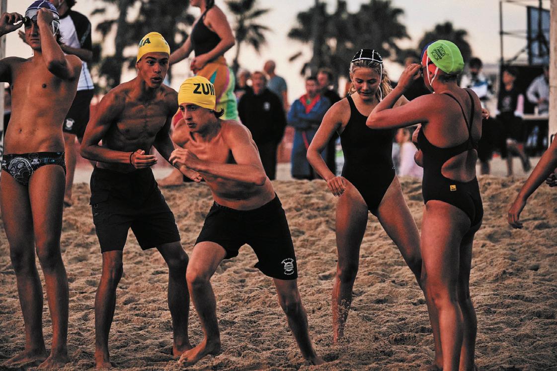 relay, a lifeguarding skills medley relay that includes running, swimming, paddling, and rowing, the Zuma senior (18 and over) guards placed an impressive third. Los Angeles County lifeguard Holly Maine, who was on a winning crew last year as well, explained that she and her coed team competed against the best lifeguards in Southern California and beyond.