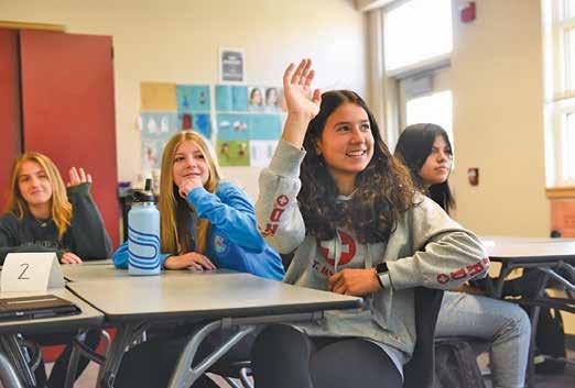 Middle School: Students cycle through daily classes of math, English, social studies, French or Spanish, arts & engineering electives, science, and athletics. Important social-emotional learning also occurs during dedicated advisory time, class meetings, and MS Town Meetings. Class sizes range from 11 to 19, depending on the hour of the day, with average class size at 15. Upper School: Students cycle through daily classes of math; English; social studies; French, Spanish, or Mandarin; art electives; science; computer science, engineering & design electives; and athletics. Important socialemotional learning also occurs during dedicated advisory time, class meetings, and Town Halls. Class sizes range from 6 to 20, depending on the hour of the day, with average class size at 15.