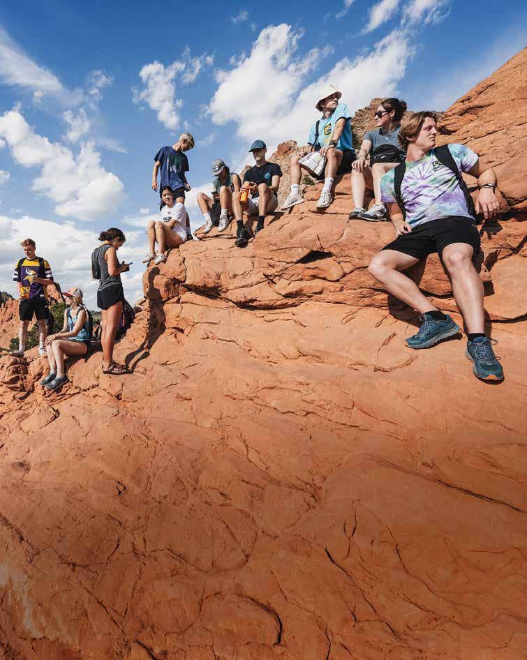 New Student Orientation students hike through the beautiful sandstone formations and enjoy the views of Pikes Peak during a ~2 miles hike at Garden of the Gods National Natural Landmark.