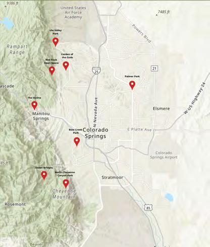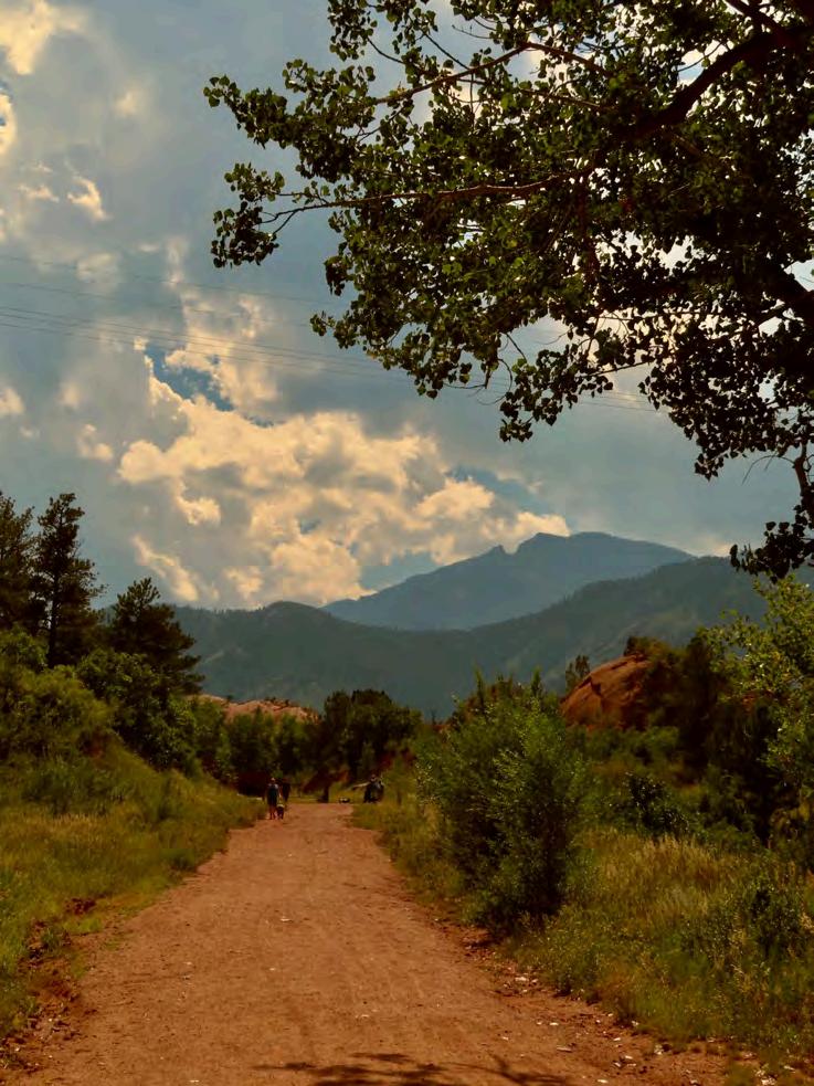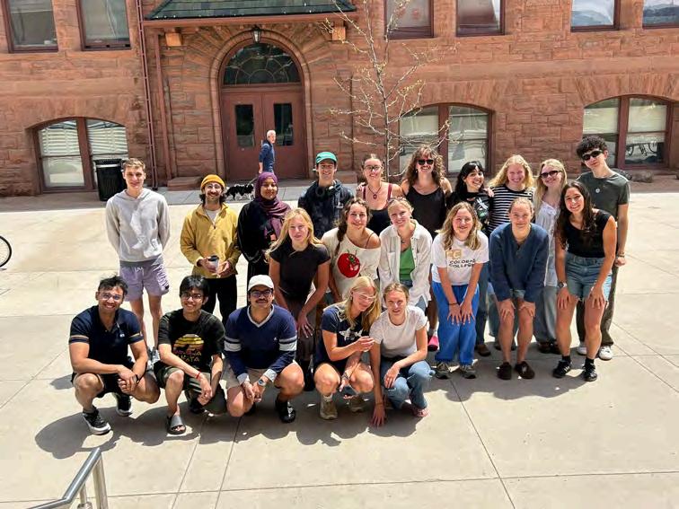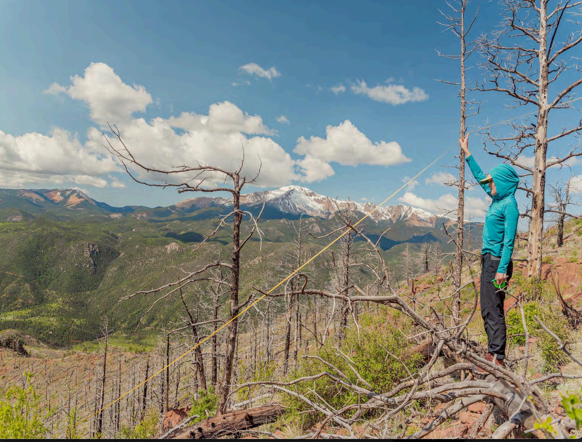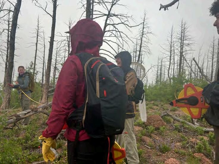 Fromtopleft:1)WaldoCanyonteammemberslay a transect. Photo by Macy McCauley ‘25. 2) Creative team members work a table at Publication Day at CC. Cyndy Hines. 3) Colorado trees along a river. Photo by Libby Cutler ‘26. 4) Cyndy Hines speaks at Data Viz Nite and 5) Katie Lockwood catches a butterfly for her pollinator research. Photos by Macy McCauley ’25. 6) 2024 Waldo Canyon team members Rafi Khan ‘26, Ben Curry’25,TylerMielke‘26,andRachelPhillips‘26 at Data Viz Nite. Photo by Cyndy Hines. 7) 2025 Waldoteamposesforasillyphoto.PhotobyMacy McCauley ‘25. 8) Ethan Stewart ’25 at Data Viz Nite. Photo by Cyndy Hines. 9) The base of Pikes Peak. Photo by Libby Cutler ‘25. 10) State of the Rockiesteam.PhotobyCyndyHines.
