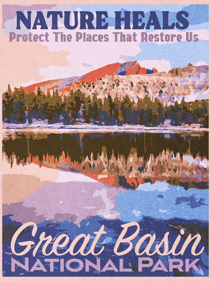 The calm waters of Stella Lake in Great Basin National Park offer sanctuary for those seeking renewal amid ancient bristlecone pines. I chose this site for its delicatebalanceofremotebeautyandthe healing potential it provides—qualities increasingly valued by residents across theRockyMountainWest.Findingsinthe 2024 Conservation in the West Poll underscoreagrowingconsensusthatour publiclandsplayakeyroleinpromoting mental well-being, yet face threats from overcrowding, climate change, and diminishing resources. My motto, “Nature Heals: Protect the Places That Restore Us,” reflects the urgency to safeguard these landscapes. By prioritizing responsible visitor management, adaptive resource strategies, and climate resilience, we can ensure that Stella Lake remains a restorativehavenforgenerationstocome, embodying both environmental conservation and the enduring human needforsolaceinthenaturalworld.
