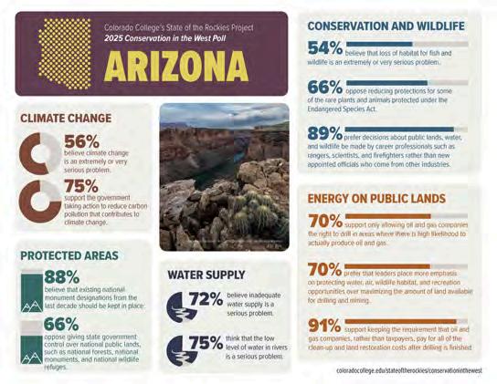 The State of the Rockies Conservation in the West Poll surveys people in the 8-state Rocky Mountain Region about their attitudes toward public land conservation and other current environmental, social, and political issues we face living in the West. The poll consistently demonstrates a growing desire to protect our nationally designated public spaces. Our poster contest asks students to focusonanaspectofthepollfindings,andcreateavisualrepresentationofwhyparkprotectioniscrucial.