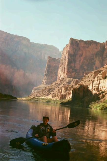 Following a long tradition of river rats, environmentalists, and Colorado College students, I boated down the Colorado River through Grand Canyon on a trip organized by my friend and CC alum, Evelyn Baher-Murphy (Ev). Following geologic layers of time down a path carved by the mighty Colorado River, we moveddownstream,farbelowtheDragon BravoandNorthRimfiresburningabove us.Smokehungthicklyintheair,ashfell onus,andbythetimewereachedSaddle Canyon we were able to see the huge mushroomcloudofsmokefromwhichwe emerged. Hours before sunset, the sun splatteredorangeandpinkoverthescene. Upstream of the Little Colorado River smoke filled the air, and downstream we sawonlybluesky.Theriverwasrunning clear, it was peak monsoon season and there was no rain to wash sediment off the canyon walls and into the river. The canyonisabrutalenvironmentandaweinspiringdemonstrationofwater’spower over geologic time. At the bottom of the great gash, in a desert filled with life hardened to the harshest conditions, century plants bloomed for the first and last time in 20-40 years. Maiden hair ferns, mosses, and monkey flower drape fromaseepinthecanyonwallusingwhat littlewaterthereistosustainlife.