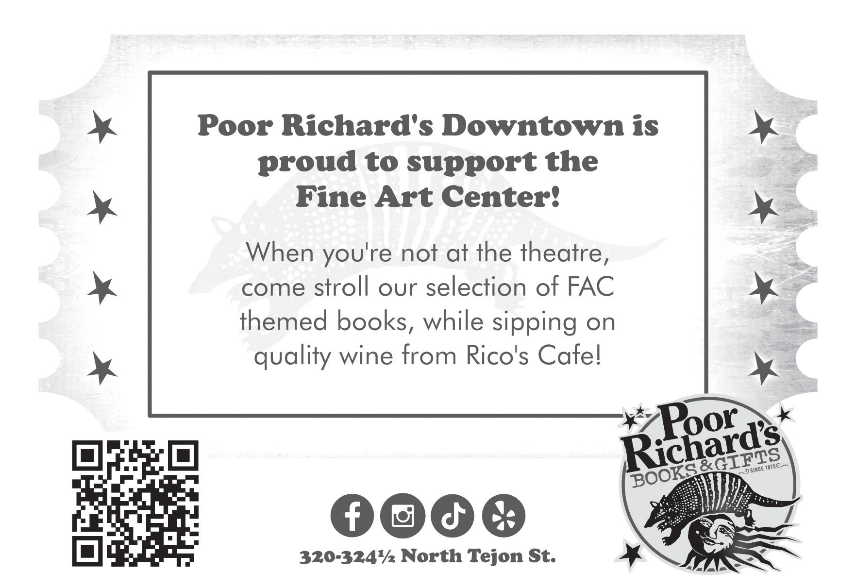 Make your night at the theatre unforgettable with Center Stage! Each event in this series is one-of-akind, with themed cocktails, interactive activities, and playful surprises inspired by the show on stage. Bring your crew, meet some new friends, and let’s turn an ordinary night into something unforgettable, all while supporting the FAC theatre with some extra love.