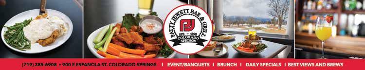 CALL TO ADVERTISE 719-602-4363 I Find More at coloradocommunityconnection.com • PG 13 ...DINING 110 East Cheyenne Mountain Blvd. (719) 527-0500 229 South 8th St. (719) 203-4243 miguelsmex.com $10 OFF TWO LOCATIONS Located at: 2540 Tenderfoot Hill St Colorado Springs, CO (719) 465-3340 aspenamericanbargrill.com Modern American Eatery and Steakhouse serving modern American fare, full select bar including 15 draft beers on tap and large selection of wine & cocktails, & heated outdoor terrace. Champagne Brunch Every Sunday $ 99 Per Person 49 FREE ENTREE