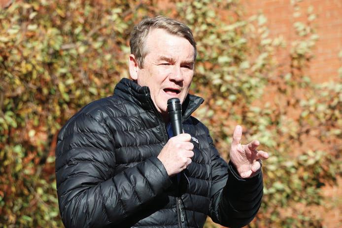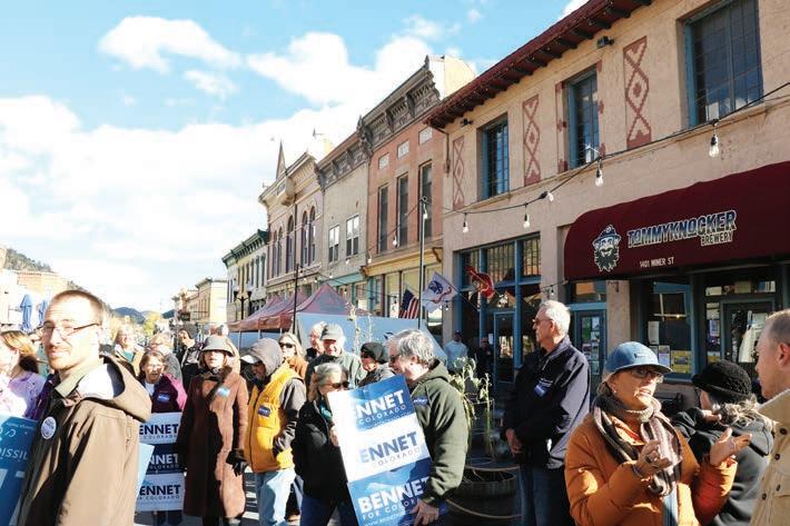 Sen. Michael Bennet, Congressman Joe Neguse, Gov. Jared Polis, Secretary of State Jena Griswold and others were welcomed to the pickup truck-turned-stage in front of Tommyknocker Brewery.