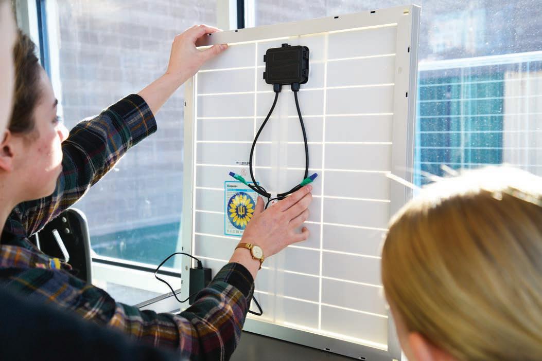 Stromberg’s class took used solar panels, put a piece of equipment on them and converted them to four-port USB chargers. e panels were decorated with supportive messages, photos and artwork, and brought to Lenec.