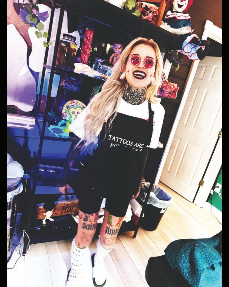 Lauren Ochsenschlager, owner of The Haunt Tattoos & Oddities in Elizabeth, in her tattoo parlor. The Haunt opened in August 2023.