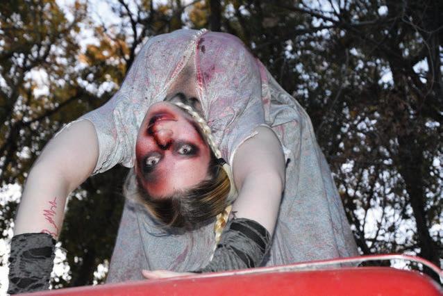 attraction, built on 40-acres corn fields. It’s a mile-long journey along Riverdale Road that then veers off to walk through a corn maze with stops into haunted houses chased by a zombie apocalypse with monsters, ghosts, killer clowns and haunting scarecrows popping out from everywhere.