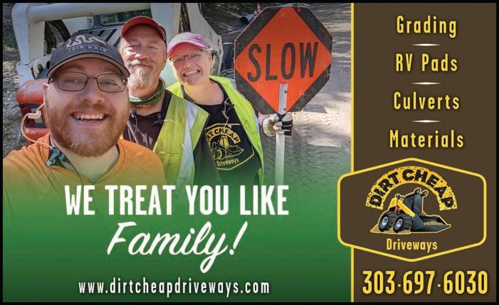 Tins 25% off • Shake 1/8ths: $10 (Select shake only, limit 2 per customer) All above specials, while supplies last. No stacking of discounts. Sale prices do not include tax. Dirt Cheap Hustler Ad 9_21 and 9_28 copy.pdf 1 9/14/23 5:19 PM • Septic Pumping • Septic Repairs • Certified Inspections • Frozen Lines • Excavating Locally Owned and Operated. Serving Park, Jefferson & Clear Creek Counties. 303-838-5115 • www.searchseptic.com • searchseptic@gmail.com Heating, Air Conditioning, Boiler Repairs and Installations Mini Split Heat Pumps Repairs & Installation $100000 OFF 10% OFF REPAIRS NEW AMANA FURNACE & AC PURCHASE & INSTALLATION. Must present at time of service or repair. Expires 9/30/2023 RESIDENTIAL HOME ONLY excludes service call CALL US TODAY 303-936-2696 • SINCE 1989 RESIDENTIAL AND LT. COMMERCIAL • REPAIRS ON MOST BRANDS PREVENTATIVE MAINTENANCE • REPLACEMENTS AND NEW INSTALLATIONS WE ARE LICENSED, INSURED & NATE CERTIFIED UP TO Call us today at 303-936-2696 www.dnmech.com www.rrroofingandsiding.com (303) 838-8126 P.O. Box 1389 • 60752 US HWY 285 • Bailey, CO 80421 • Fax: (303) 838-5887 • info@rrroofingandsiding.com Roo ng • Gutters • Custom Fabrication Compare bids apples-to-apples. Locally owned and in business for 27 Years. FINANCE OPTIONS AVAILABLE POSTAL PATRON PRSRTSTD ECRWSS U.S. POSTAGE PAID THE HUSTLER : 27972 Meadow Drive ste 320 Evergreen, CO 80439 WEEK OF SEPTEMBER 21, 2023 | VOLUME 60 • NO. 36