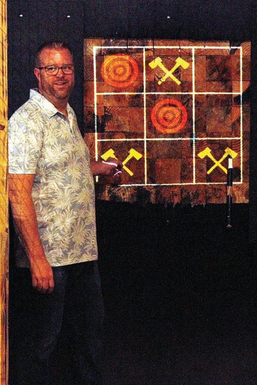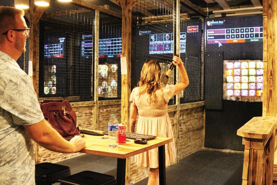 had opened his own venue — dubbed rashin’ Axes — in Parker. e 1,600-square-foot space, which just celebrated its rst anniversar y, houses six throwing lanes in a strip mall on Mainstreet near the AMC eater.