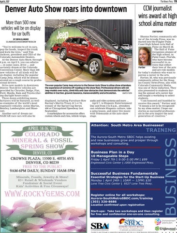 The ever-popular Camp Jeep returns to the Denver Auto Show to allow show attendees the experience of extreme off-roading on the show floor. Professional drivers will roll Jeep models over rocks, climb hills and clear obstacles that demonstrate the vehicles’ abilities in traction, ground clearance, maneuverability and articulation. COURTESY PHOTO displayed, including Furniture Row Racing’s Martin Truex Jr.’s # 78, winner of the Sprint Cup Series 400 at Chicagoland Speedway last September. A marketplace for accessories offers custom wheels and rims, vehicle wraps,