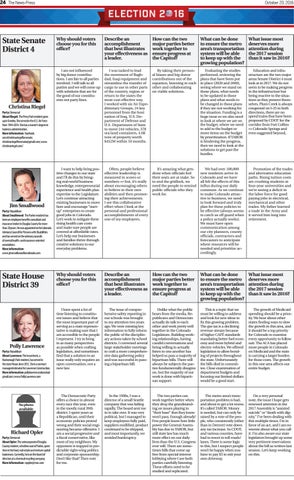 Polly Lawrence Party: Republican About Lawrence: The incumbent, a Roxborough Park resident, has served in the state House since 2012. She is a contract manager/estimator for Lawrence Construction. More information: pollylawrencecolorado@ gmail.com; www.PollyLawrence.com
