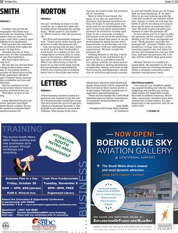 TRAINING The Aurora-South Metro SBDC helps existing and new businesses grow and prosper through workshops and consulting.
