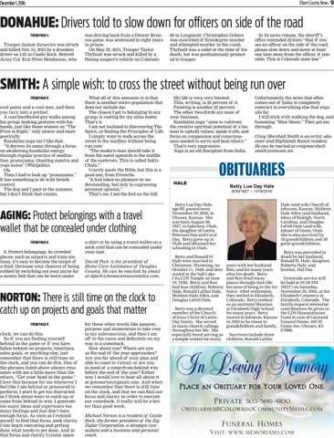 for those other words like passion, purpose and momentum to take root in my subconscious, and then I am off to the races and definitely on my way to a comeback. How about you? Where are you as the end of the year approaches? Are you far ahead of your plan and able to coast to victory or are you in need of a come-from-behind win before the end of the year? Either way I would love to hear all about it at gotonorton@gmail.com. And when we remember that there is still time on the clock, and that we can find our focus and clarity in order to execute our comeback, it really will be a better than good week. Michael Norton is a resident of Castle Rock, the former president of the Zig Ziglar Corporation, a strategic consultant and a business and personal coach.