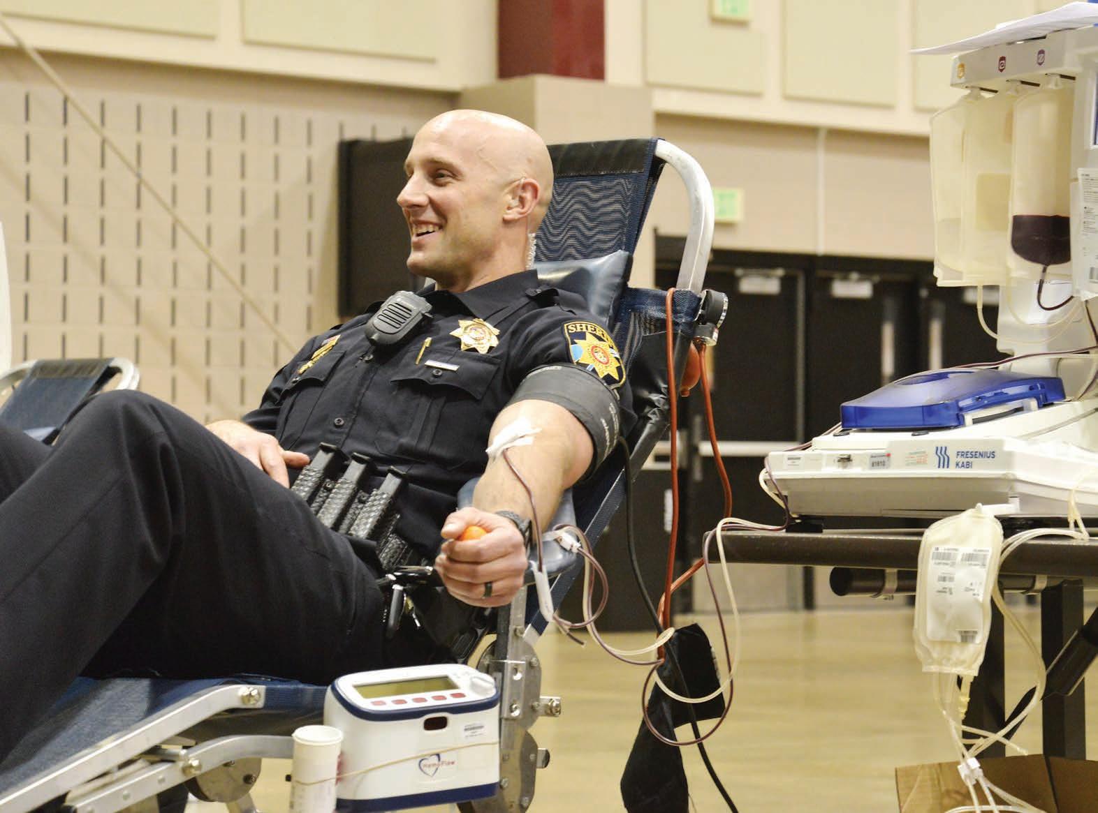 For Sgt. Mark Mithuen, who has been with the sheri ’s o ce since 2011 and oversees the school resource o cers, giving blood is another way to help save a life.