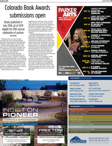 cepted from a diverse mix of Colorado readers to serve as selectors and judges for the awards. Scholars, libraians, booksellers, teachers, writers, reviewers and avid readers are encouraged to apply at coloradohumanities.submittable.com/ submit. Colorado Humanities is the only Colorado organization exclusively dedicated to supporting humanities education for adults and children statewide. Celebrating its 45th year and its 15th year as host for the Colorado Center for the Book, Colorado Humanities is a nonprofit affiliated with the National Endowment for the Humanities, The Library of Congress Center for the Book, the Smithsonian Institution and the national award-winning educational nonprofit Motheread, Inc. With offices in the Denver Tech Center in Greenwood Village, Colorado Humanities works with 150 program partners throughout the state to design and implement programs that best meet each community’s needs. To learn more, visit coloradohumanities.org or call 303894-7951.