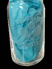 giving away a glass etched with the pickleball pun, “Designated Dinker” from Colorado company, Bevvee.