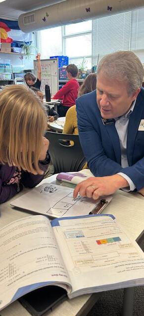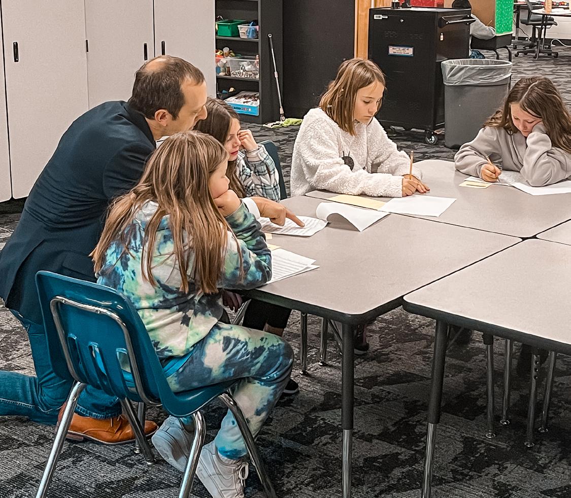 Sen. Chris Kolker spends time in the classroom at Centennial Elementary School in Littleton.