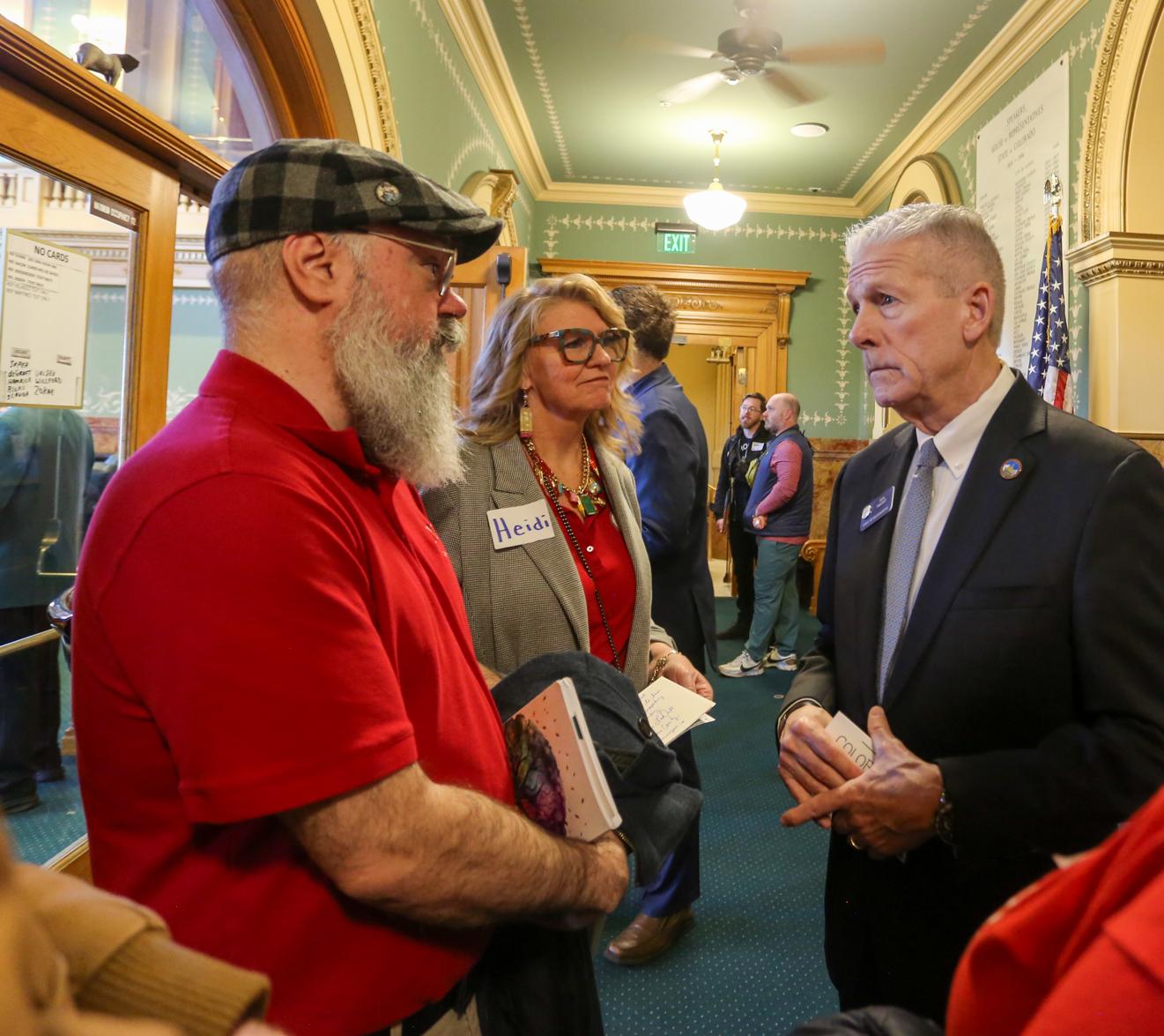 ABOVE: Sen. Byron Pelton meets with members. BELOW: Members speak with CEA Champion Sen. Chris Kolker, Chair of Senate Education.