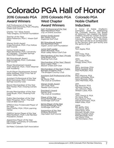 Colorado PGA Hall of Honor 2016 Colorado PGA Award Winners
