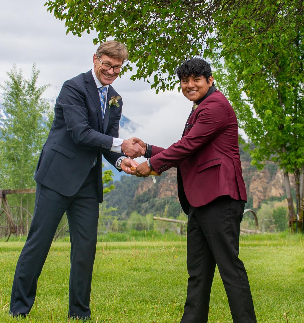 Jeff Leahy, Head of School presents a diploma to Sophie Pike ‘23
