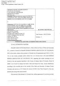 No. 1043 l Thursday, September 01, 2022 l ColoradoTimesNews.com *출장교육만 합니다단체교육개인교육 콜로라도주 총기 법안이 업데이트 됨에 따라 이론교육(5~6시간) 또는, 이론+안전교육(8~10시간)을 이수하면 수료증을 발급해드립니다. 총을 소지하고 다닐 수 있는 자격증 신청을 하실 수 있습니다. -NRA Police Firearm Instructor -NRA Personal Protection Inside Home Certified Instructor -NRA Personal Protection Outside Home Certified Instructor -Certified Police Firearm Instructor 자격증 소지 총기 교육원 720-608-9986303-517-8819 문자 요망 2인 이상 디스카운트단체드립니다! (CERTIFIED FENG SHUI CONSULTANT) 이지영 부동산 고객님의 만족을 위해 최선을 다하겠습니다. 주택 매매 전문 노인회관 변호사 비용 미납으로 선취 특권(Lien) 설정 조석산 전 노인회장 및 3인 그리고 노인회(Korean Senior Associ ation) 명의로 이명진씨 외 다수를 상대로 진행했던 소송에서 변호사 비를 미납하여 당시 변호사였던 로버트 피트러씨에 의해 노인회관이 선취 특권 설정되었음이 확인되었다. 이 사실은 로버트 피트러씨가 지난 5월 24일 법원에 신청한 법원 서 류 유치권 통지에서 확인되었는데, 원고 의뢰인 측에 노인회가 포함되 어있었고 조석산 전 노인회장 및 3인이 변호사 비용을 납부하지 않자 변호사는 노인회관을 선취 특권 설정한 것이다. 이 통지는 지난 5월에 이루어진 것으로 현재까지 조석산 전 회장 을 비롯한 원고측이 비용을 납부했는지 여부는 확인되지 않고 있다. <콜로라도 타임즈>
