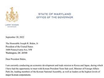 호건 주지사는 한국 자동차 제조업체에 대한 보호 주의 정책이 바이든 행정부가 추진해온 물가안정이 나 기후변화 대응에도 역행한다고 주장했다.