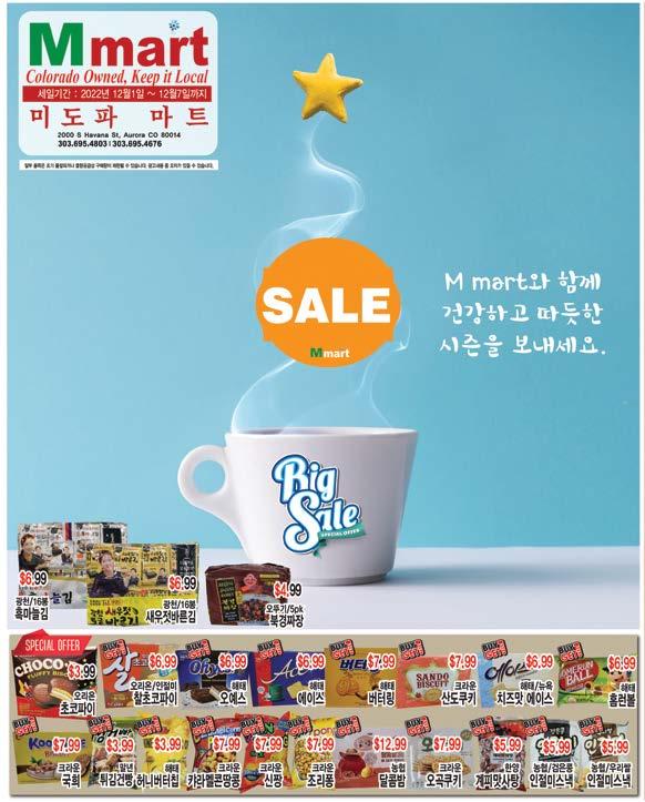 2022년 12월 1일 1055호 (303) 733-7533 (303)745-8828 충치치료 | 보철 치료 어린이진료 | 틀니치료 | 임플란트 틀니문제, 당일에 고쳐 드립니다 정규혁 원장 오로라점 레이크우드점 MAX INTERNATIONAL BEAUTY SCHOOL 신분�상관없이�라이센스�획득가능 “학생융자�가능. 상담해드립니다” Life insurance underwritten by American Family Life Insurance Company 6000 American Parkway Madison, WI 53783 ~014108 12/17 ©2017 – 15545171 Policy Form ICC17-223 WL, Policy Form L-223 (ND) WL, Policy Form L-223 WL, Policy Form ICC17-224 WL, Policy Form L-224 (ND) WL, Policy Form L-224 WL 최준경 부동산 호텔 모텔 사업체 상가 주택 오랜 경험과 노하우로 고객만족 jchoi33@hotmail.com (720) 316-6672 세컨홈 데이케어/홈케어 2nd HOME COMMUNITY 교통사고(물리치료)/한방 7374 S Alton Way, Ste 103 Centennial, CO 80112 이미옥 스테잇팜 종합보험 6635 S Dayton St Suite 220 Greenwood Village CO 80111 Fax 303-790-1908 Miok.fowler.bz0o@statefarm.com Office 303-790-1779 shinsadong.com Dine-In Welcome 3033 S Parker Rd Suite 750 Aurora CO 80014 경영학 박사 공인 회계사 Tel 303-337-6244 보안카메라,POS시스템,크레딧카드,ATM 알람서비스,온라인 구축(홈페이지,마케팅) 홈페이지 제작, 관리 CCTV 음향 SYSTEM · 오피스 네트워크 DB SYSTEMS Tel (213) 822-4003 콜로라도 직영 대리점 이제는 모든 가전제품도 쿠쿠에서~ 제품 구매 및 렌탈 문의 720- 487- 4455 11001 E. Arapahoe Pl #B5, Centennial, CO 80112 Happy Paw (303) 862-7879 $10 OFF Grand Open now 동심�속으로�빠져드는�콜로라도�발레단의 “호두까기�인형” 절찬리에�공연�중 구석�구석�재미있는 콜로라도�겨울온천�이야기 (1편) 콜로라도 한인합창단, 막바지 공연 준비로 한창 둘로스�교회�박병은�목사 ‘로마서�이해하기 1권’ 12월 11일�출판기념회