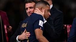 을 안겼다고 말하고 나서 아르헨티나 의 우승을 축하한다고 덧붙였다. 마크롱 대통령은 이어서 올린 다 른 글에서는 “레 블뢰가 우리를 꿈꾸 게 했다”고 말했다. 파란 군단으로 해 석하는 레 블뢰는 유니폼 색깔에서 따온 프랑스 국가대표팀의 애칭이다. 이날 결승전을 카타르에서 직접 관람한 마크롱 대통령은 경기가 끝 나고 킬리안 음바페를 찾아가 포옹 하는 모습이 카메라에 포착됐다. 마크롱 대통령은 BFM 방송과 인 터뷰에서 음바페에게 “당신은 아주 훌륭한 선수이고 우리는 당신이 매 우 자랑스럽다고 말했다”고 전했다. 그러면서 “전반전에는 우리가 뒤 처져 있었지만, 이후에 음바페와 우 리 팀이 보여준 것은 정말 놀라운 일” 이라고 치켜세웠다.