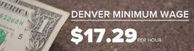 최저임금 인상, 콜로라도 주 전체 13.65달러 덴버는 17.29달러 미국의 전체 주 가운데 절반 이상이 올해 최저임금 을 인상한 가운데, 콜로라도 주도 최저임금이 올해 부터 13.65달러로 책정되었다. 특히 덴버 시에서 일 하면 최저임금이 9%나 오른 17.29달러를 받게 되 는데, 이는 미국에서 무려 6번째로 높은 최저임금 이다. 이로써 덴버 시는 새해에 미국에서 가장 높 은 최저 임금을 받는 도시들 중 하나로 등극했다. 소수의 웨스트 코스트 도시들을 제외한 모든 도시 들의 최저 임금을 능가하게 되는 것이다. 시 재정부 는 지난해 기록적인 속도로 치솟은 소비자물가지 수에 따라 매년 1일 최저 임금을 인상하기로 결정 한 것으로 알려졌다.