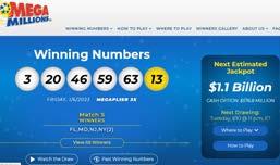 메가 밀리언스 복권은 숫자 1∼70 사이에서 5개를 선택한 뒤 1∼25 중 1개를 추가로 고르는 방식이다. 1등은 6개 숫자를 모두 맞춰야 하 는데 확률이 3억2천260만 분의 1이 다. 마지막 1등 당첨자는 작년 10월