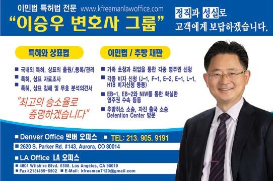 No. 1088 Thursday August 10, 2023 l ColoradoTimesNews.com 5 1958년생부터 고객부담 제로~! 믿고소개해“좋은보험만드립니다. 전화주세요” 융자·보험 전문인 이성선 NMLS NO. 940251 License # mb 1000143628 Sungslee11@gmail.com 보스턴대학졸업 estherleeinsurance@gmail.com 보험 전문인 이 에스더 720-280-3066