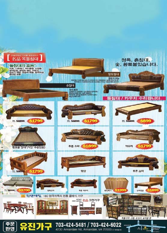 60 콜로라도 타임즈 · 2023년 10월 5일 목요일 · 1095호 지압침대 투톤카우치 슈퍼싱글침대 숯침대 일교차가 큰 콜로라도 날씨에는 따끈한 온돌침대가 필수! 일교차가 큰 콜로라도 날씨에는 따끈한 온돌침대가 필수! 평상 $2,399 의료평상 $1,399 숯매트 $750 가을맞이 전제품