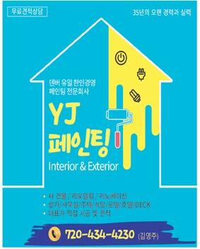 프리미엄 주간지 콜로라도 타임즈 Volume 24 · Issue 16 · WEEKLY· 2024년 · 5월 2일 · 1123호 지오 미용실 MAX INTERNATIONAL BEAUTY SCHOOL 신분�상관없이�라이센스�획득가능 “학생융자�가능. 상담해드립니다” Main Office: 303-771-9400 Life insurance underwritten by American Family Life Insurance Company 6000 American Parkway Madison, WI 53783 ~014108 12/17 ©2017 15545171 Policy Form ICC17-223 WL, Policy Form L-223 (ND) WL, Policy Form L-223 WL, Policy Form ICC17-224 WL, Policy Form L-224 (ND) WL, Policy Form L-224 WL 최준경 부동산 호텔 모텔 사업체 상가 주택 오랜 경험과 노하우로 고객만족 jchoi33@hotmail.com (720) 316-6672 세컨홈 데이케어/홈케어 2nd HOME COMMUNITY 3138 S Parker Rd, Aurora CO 80014(신라식당 근처) skim@denfins.com 이미옥 스테잇팜 종합보험 6635 S Dayton St Suite 220 Greenwood Village CO 80111 Fax 303-790-1908 Miok.fowler.bz0o@statefarm.com Office 303-790-1779 3033 S Parker Rd Suite 750 Aurora CO 80014 경영학 박사 공인 회계사 척추교정 교통사고 청소년 척추검사 앤디킴 부동산 주택 및 상업 부동산 전문가 不動産 日本語もできます! 제품 구매 및 렌탈 문의 720- 487- 4455 콜로라도 직영 대리점 포차 시·노래방 완비 5PM OPEN 교통사고(물리치료)/한방 7374 S Alton Way, Ste 103 Centennial, CO 80112 고객을 위한 맞춤 설계 전문 달라진 생명보험 알뜰안내 함께 일하실 에이전트 모집 (303) 801-0357 허진옥 보험 내과 / 물리치료과 / 피부 미용과 Weight Loss Program injection (한국어) 719.332.8818 콜로라도 한인합창단 .................................................................................................... ..................................................................... ......................................................... ..................................................... 재미한국학교 콜로라도 지역협의회, 백일장 및 그림그리기 대회 성료 사우스웨스트항공, 8월부터 4개 공항 운항 중단 애터미, 성공스토리 세미나 개최로 주목 엑셀 에너지 고객 EV 할인 더 받는다 감동적인 협업 공연 성황리에 마쳐