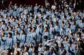 For South Korea, taekwondo gold medalist Park Tae-joon and boxing bronze medalist Im Ae-ji served as co-flag bearers for the parade of athletes.