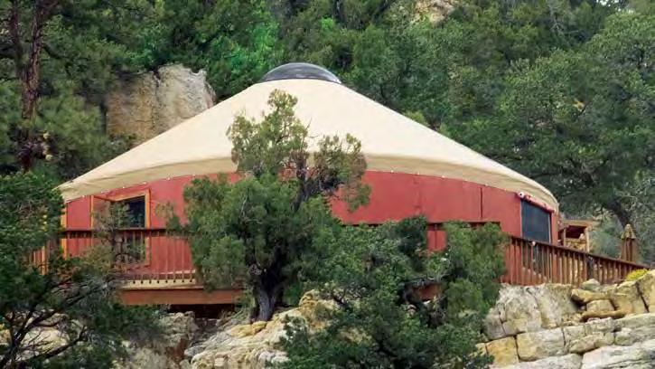 Colorado Yurts INCLUDE: Durable welded-laminate wall fabric, 7’2”sidewall height and DuroLast Roof & Valance