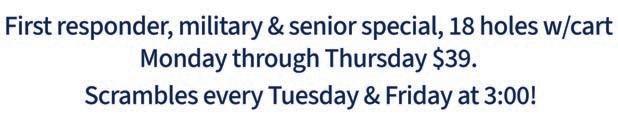 2nd Annual Soup & Chili Bowl • Saturday, October 5 11:00 am Registration, 12:00 noon Shotgun Start, 2 Person 9 Hole Scramble, 3 club format. $55 per person, $27 per member includes golf cart, prizes & lunch! Sign up for tournaments at the pro shop or call 518-634-7816