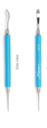 P7320 : Tweezijdig, speervormig plastic instrument voor het verwijderen van naden na het gieten met gietklei.