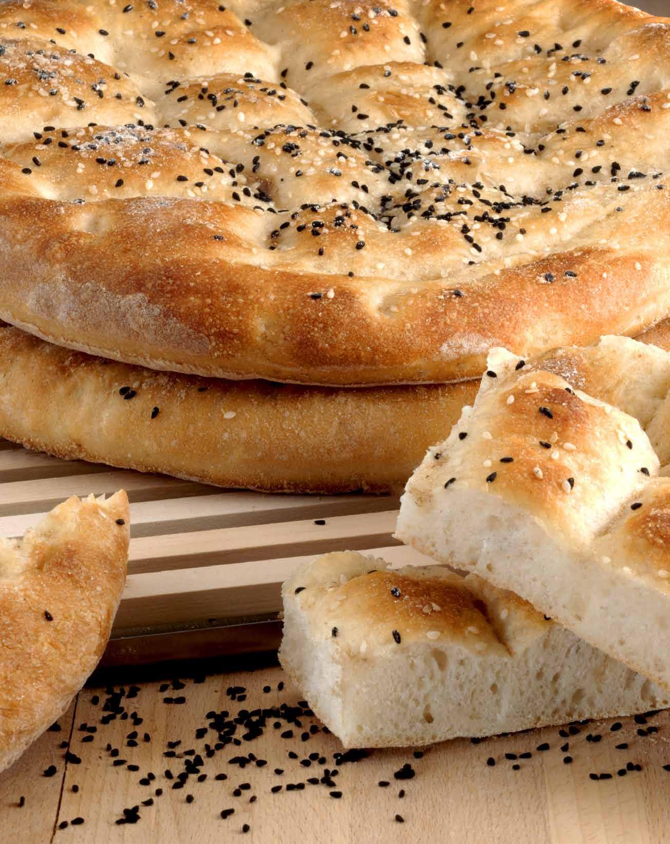 Voorgebakken wit brood, afgewerkt met sesamzaad en zwartekomijnzaad. INGREDIËNTEN: Tarwebloem, water, gist, zout, raapzaadolie, 0,8 % sesamzaad, 0,3 % zwartekomijnzaad, suiker, tarwegluten, emulgator (E471), ethylalcohol. Kan sporen van eieren, soja en melk bevatten. Pain blanc précuit décoré de graines de sésame et de cumin noir. INGRÉDIENTS Farine de blé eau, levure, sel, huile de navette, 0,8 % graines de sésame 0,3 % graines de cumin noir, sucre, gluten de blé émulsifiant (E471), alcool éthylique. Peut contenir des traces d'œufs, de soja et de lait. BEREIDING: oven: haal het brood uit de verpakking en bevochtig het lichtjes met water. Bak 5 à 8 min. in het midden van een op 220 °C voorverwarmde oven. Laat enkele minuten afkoelen. PRÉPARATION: four: sortez le pain de