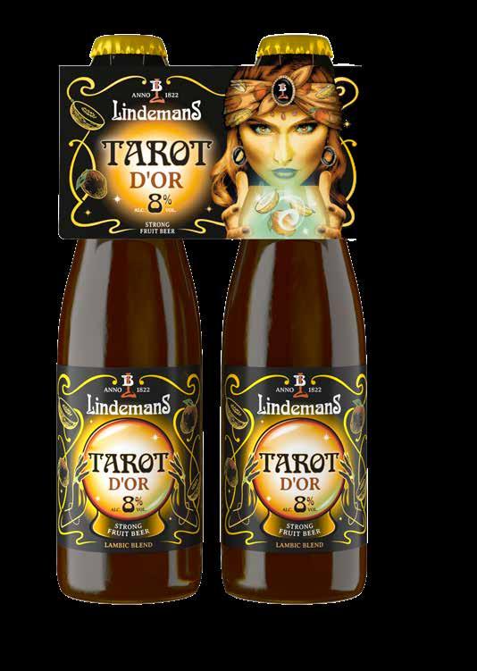 Deux nouveautés prometteuses de chez Lindemans. Ces bières sont nées d’un assemblage unique de bière de fermentation haute, lambic et fruits. La Tarot d’Or (4 x 25 cl, 8 %) surprend avec des fruits exotiques tels que mangue, citron vert et melon au miel. Tandis que la Tarot Noir (4 x 25 cl, 8 %) vous ensorcelle avec des fruits des bois foncés (myrtilles, cassis et sureau).