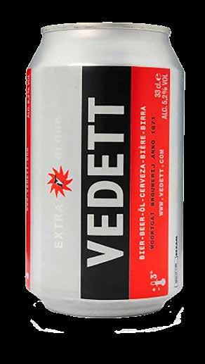(6 x 33 cl, 5,2 %), grâce à son agréable caractère houblonné et ses légers arômes de malt. Cette Vedett a un col de mousse blanc pur et un goût complexe mais doux, avec du fruité et de discrets accents de vanille.