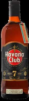 Sept années de maturation mettent pleinement en valeur les arômes et saveurs du terroir cubain. Avec des notes de tabac, fruits tropicaux sucrés, épices et vanille, le Havana Club 7 años (40 %, 70 cl) brun doré nous fait rêver. À déguster tel quel ou on the rocks