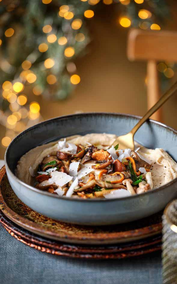23 Tostadas au chou-fleur frit, tahin, yaourt et huile aux herbes 29 Purée de céleri-rave et champignons des bois poêlés 41 Ceviche de noix de Saint-Jacques, pomme verte et coriandre