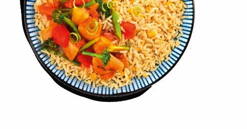 55 Saumon caramélisé aux nouilles, mangue, scampis et sauce coco